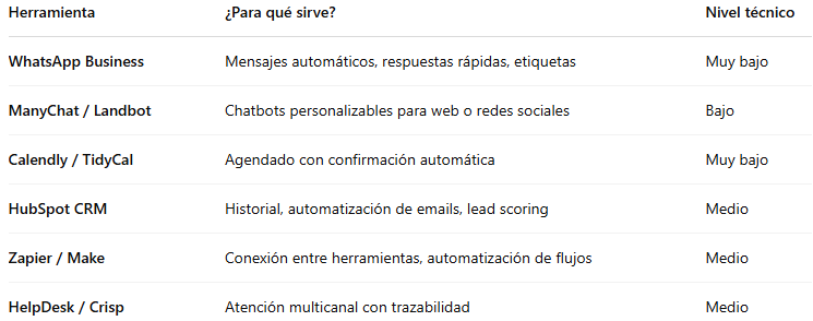 💡 Herramientas como Crisp, HubSpot o Clientify pueden unificarlo todo y mostrar el historial de cada cliente.