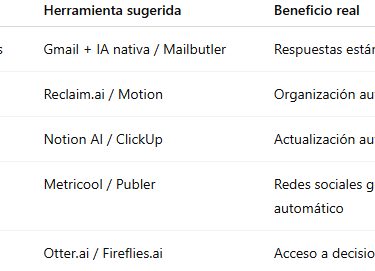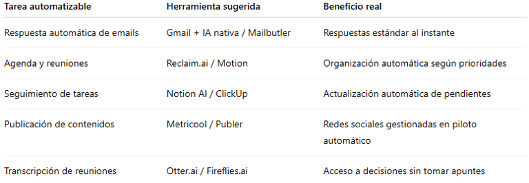 Elige 1 tarea repetitiva. No intentes cambiarlo todo hoy. Empieza por lo que más tiempo consume y menos valor aporta.