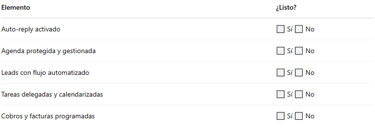 ✅ La solución: una checklist de automatizaciones mínimas para desconectar sin culpa