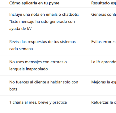 Transparencia: que tus usuarios o clientes sepan cuándo están interactuando con una IA.