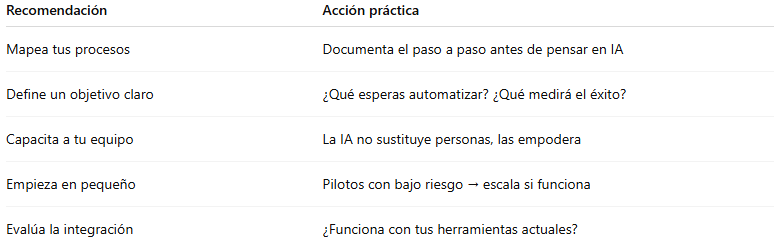 Antes de automatizar, debes entender lo que estás automatizando. No es magia: si el proceso es ineficiente en papel, será igual o peor con IA.