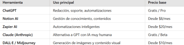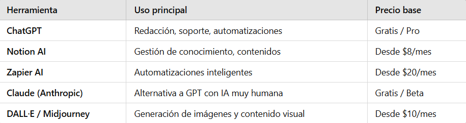 Herramientas como ChatGPT, Claude, Gemini, DALL·E o Midjourney permiten a las empresas: