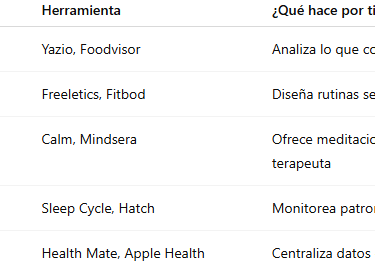 La gran ventaja: personalización. Estas herramientas no te dan consejos genéricos. Aprenden de ti y se adaptan a tu ritmo, tus preferencias y tu salud actual.