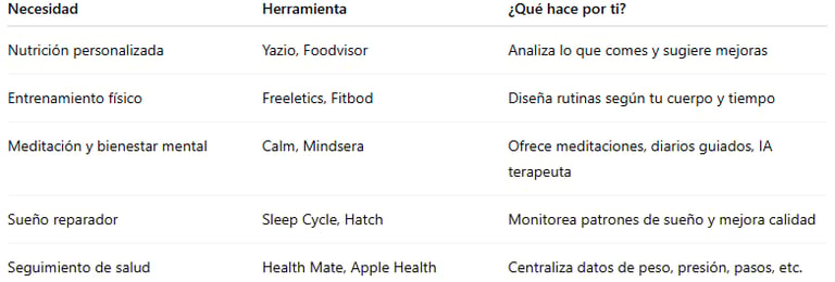 ¿Sabías que tu salud también puede beneficiarse de la inteligencia artificial? En 2025, cuidarte no requiere pasar horas investigando rutinas ni agobiarte con dietas imposibles. Hoy existen herramientas inteligentes que te acompañan en tu bienestar físico, mental y emocional.