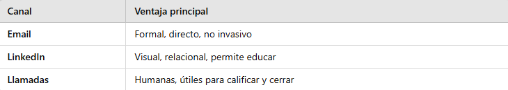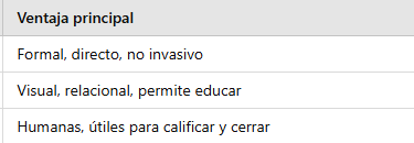 🎯 Clave: usar el canal más adecuado para cada etapa del proceso.